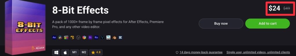 8-Bit EffectsはAE Juiceのバンドル製品、I Want It All Bundleに含まれますのでこちらを買った方がコスパが良くておすすめです。