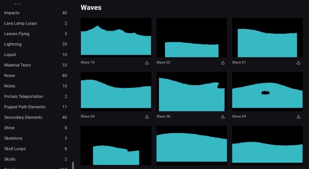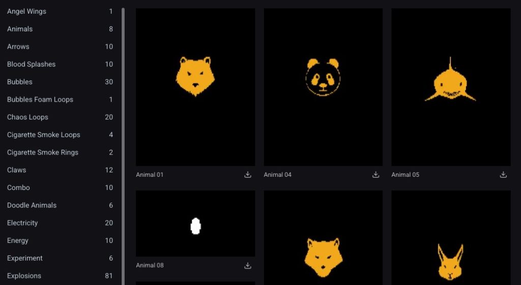 1,200種類以上の豊富なエレメントを収録しており、一コマずつのピクセルアニメーションを通じて、プロジェクトの質を一段上のレベルへと引き上げる美しいモーショングラフィックスを作成できます。炎、爆発、水しぶき、雷、ポータル、スカルなど50以上のカテゴリーが用意されており、動画に驚くようなトランジションを加えることも可能です。