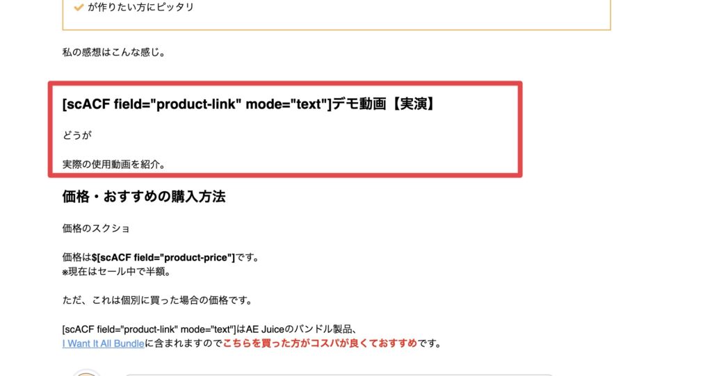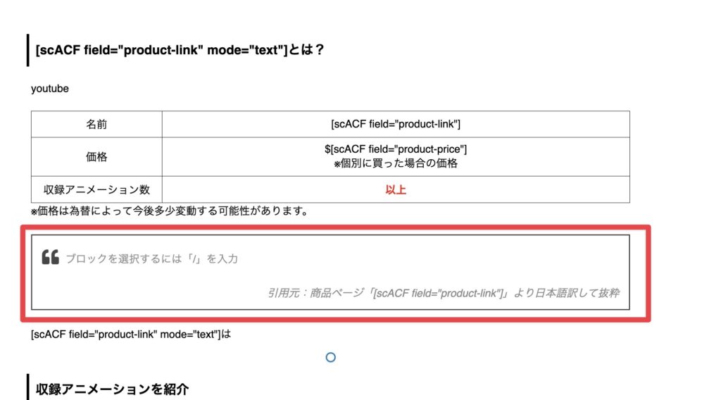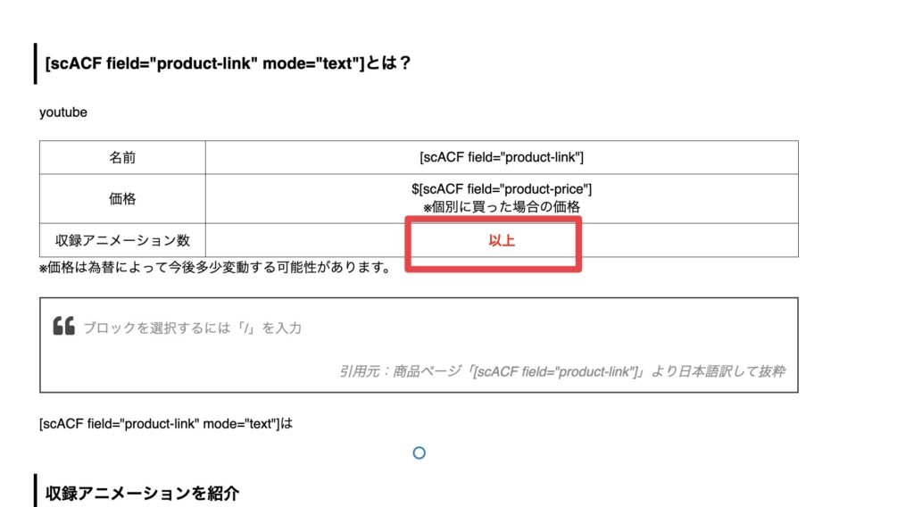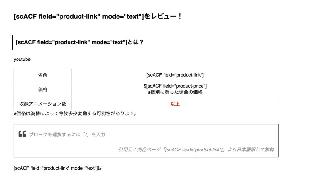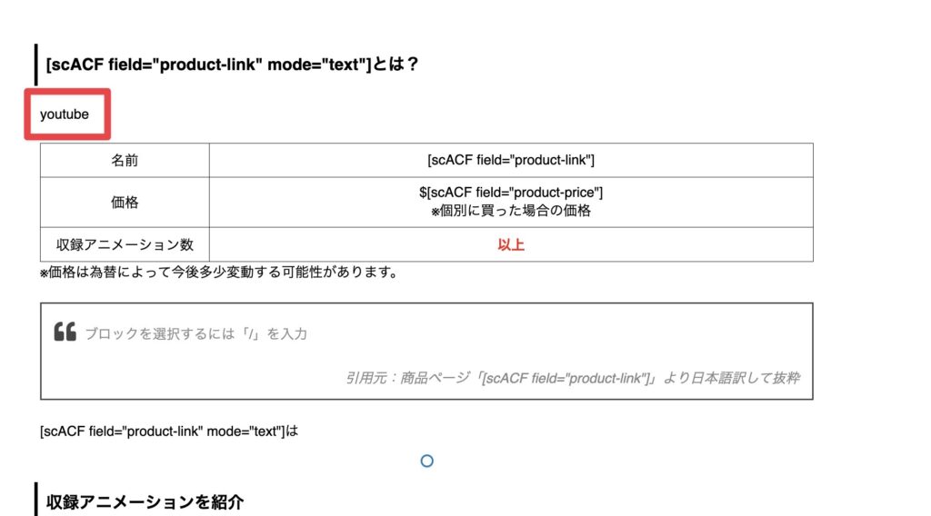 最初の「youtube」の箇所に商品ページ1番上のYouTube動画を挿入してください。