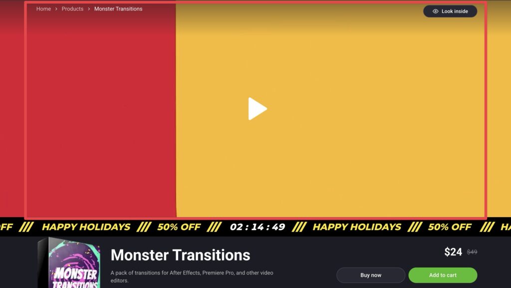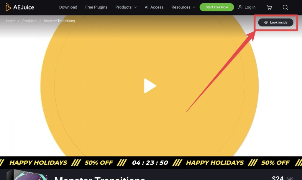 右上のLook insideをクリックすると収録アニメーション一覧のページへ遷移できます。