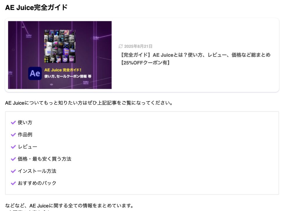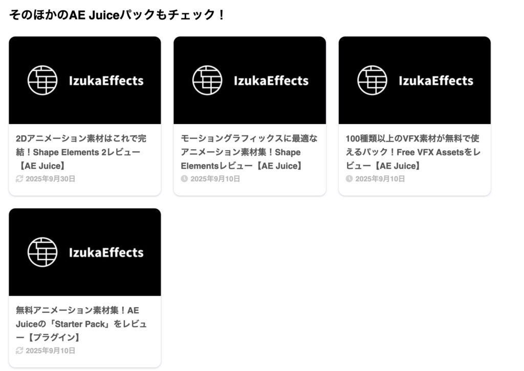 また、»AE Juiceレビュー記事は他にもいくつか執筆済みなので、