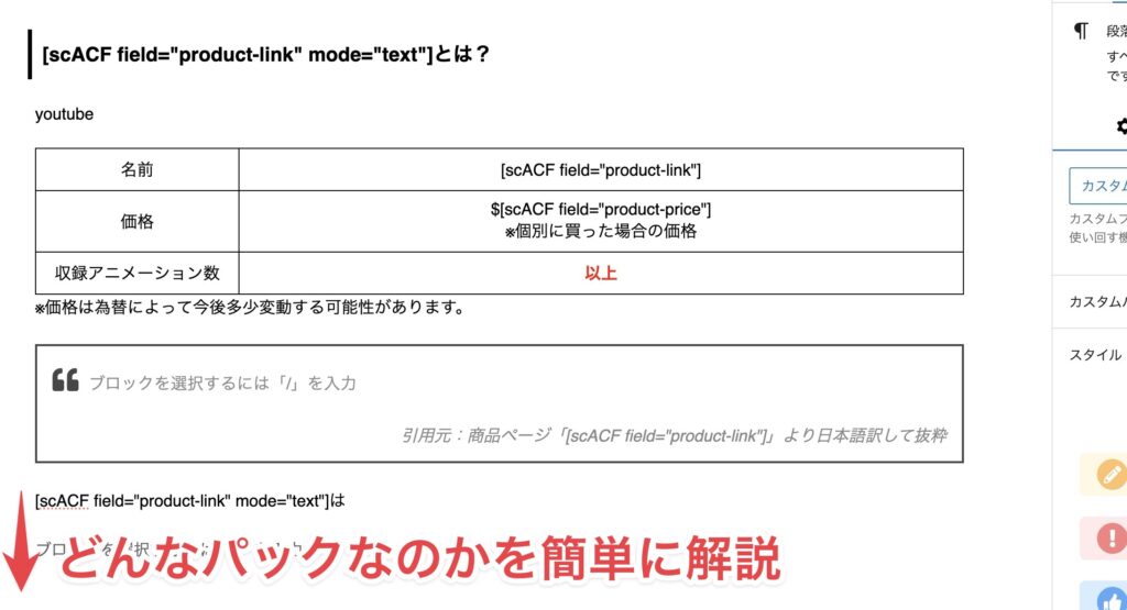 H3見出し「◯◯とは?」では、そのパックの概要を紹介します。