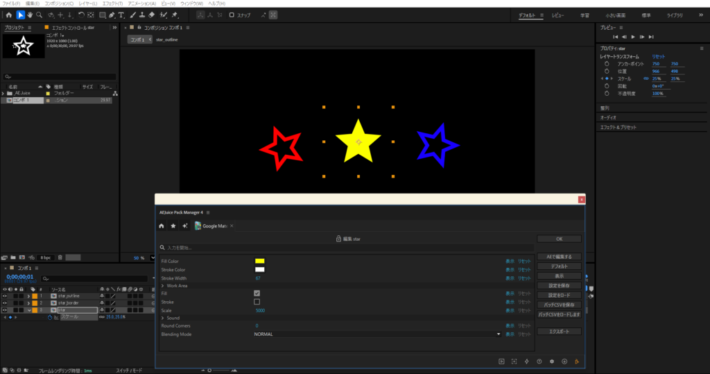 AE Juiceは「AEJuice Pack Manager」というプラグインから使うことができます。