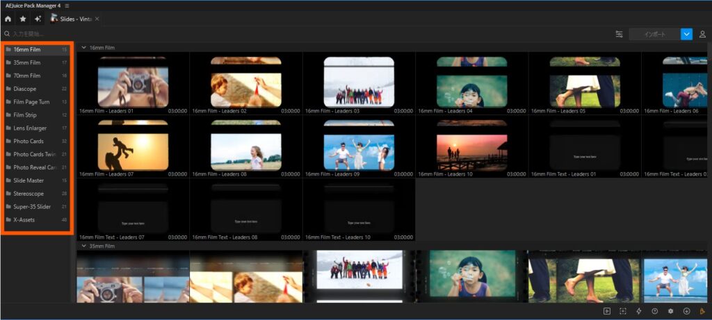 After Effects用ビンテージフィルム風スライドショーテンプレートパック(スライドショー作成ツール付き)です。