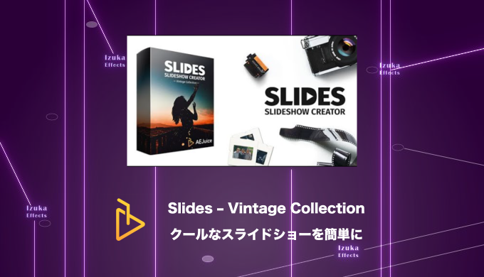 Slides - Vintage Collection is for you if you work with photos and videos or create social media content.After Effects用ビンテージフィルム風スライドショーテンプレートパック(スライドショー作成ツール付き)です。