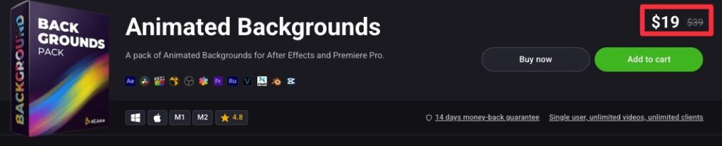 Animated Backgrounds【AE Juice,After Effects】はAE Juiceのバンドル製品、I Want It All Bundleに含まれますのでこちらを買った方がコスパが良くておすすめです。