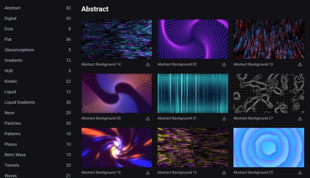 After Effectsで利用できる300種類以上のダイナミックな背景が収録されています。