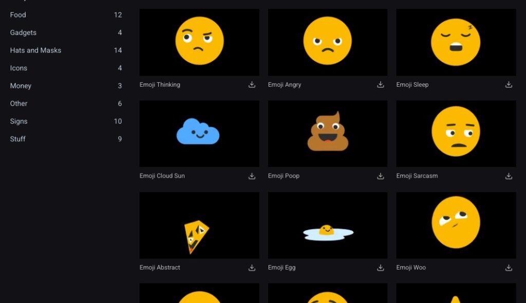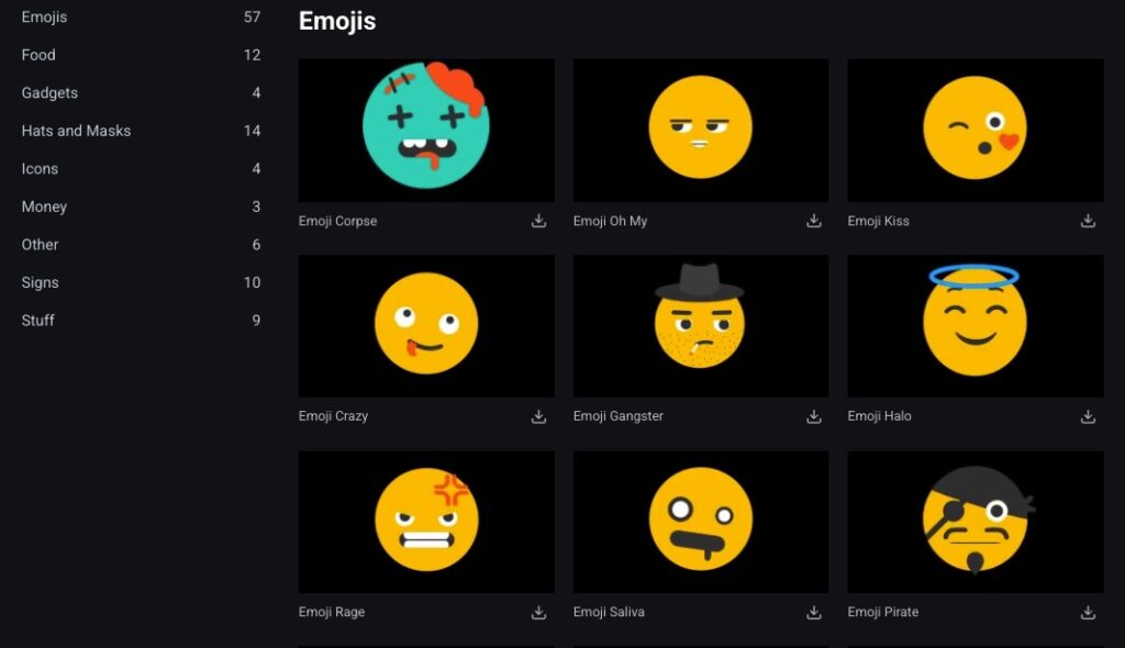 Animated Emojiは、実写映像に感情と個性を加えたい時に重宝するパックです。100個以上の絵文字が収録されているので、様々なシーンに対応できますし、