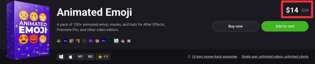 Animated EmojiはAE Juiceのバンドル製品、I Want It All Bundleに含まれますのでこちらを買った方がコスパが良くておすすめです。