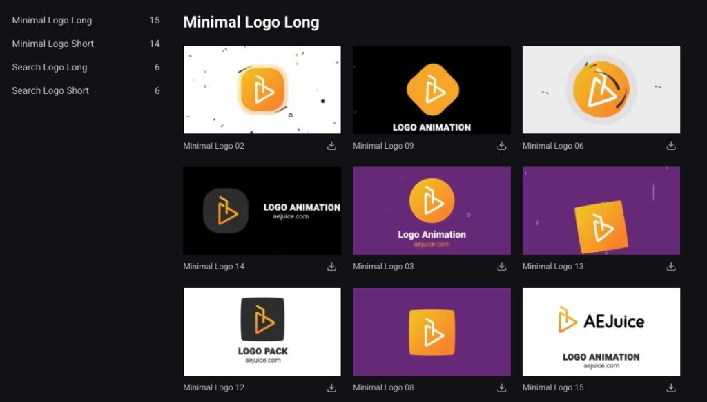様々なスタイルのロゴアニメーションが収録されています。