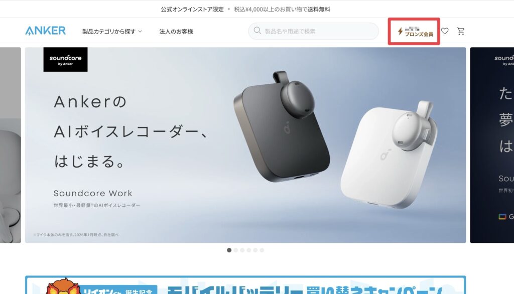 Ankerの公式サイトで無料会員登録をして製品を登録すると、