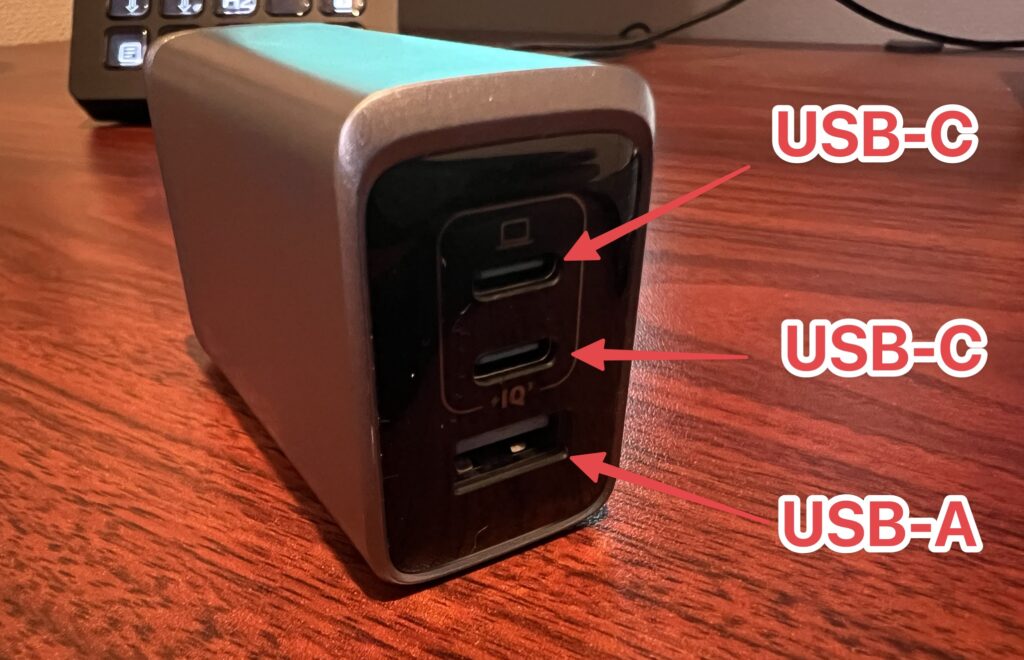 USB-C × 2ポート + USB-A × 1ポートの計3ポートを搭載しています。