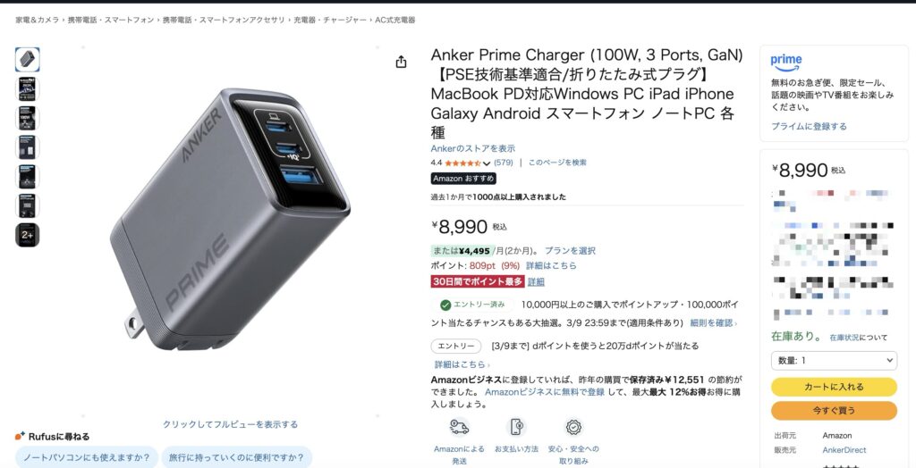 Anker Prime Charger (100W, 3 Ports, GaN) レビュー