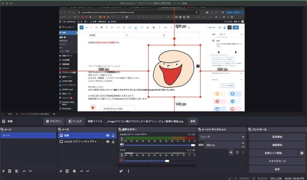 OBS Studioはソースを複数重ねたり、