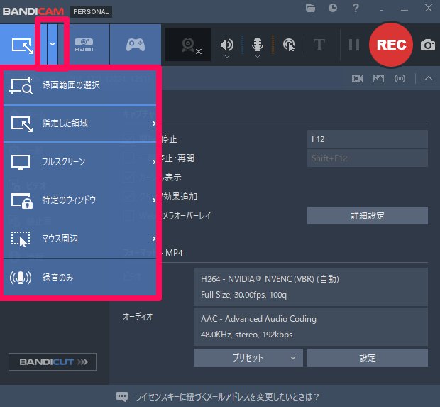 Bandicamはとにかくシンプルで直感的なインターフェースになっていて、