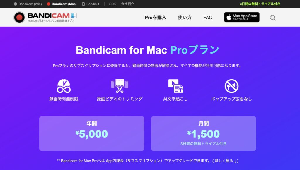 料金(Mac)無料版あり / Pro版 5,000円/年(サブスク)