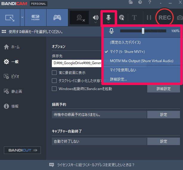 BandicamではWebカメラやマイクのオンオフがボタンひとつでできます。