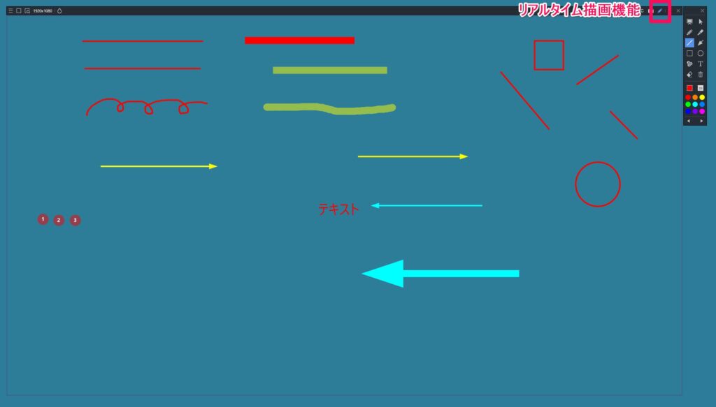• リアルタイム描画やモザイク処理など、録画中に使える便利機能が充実