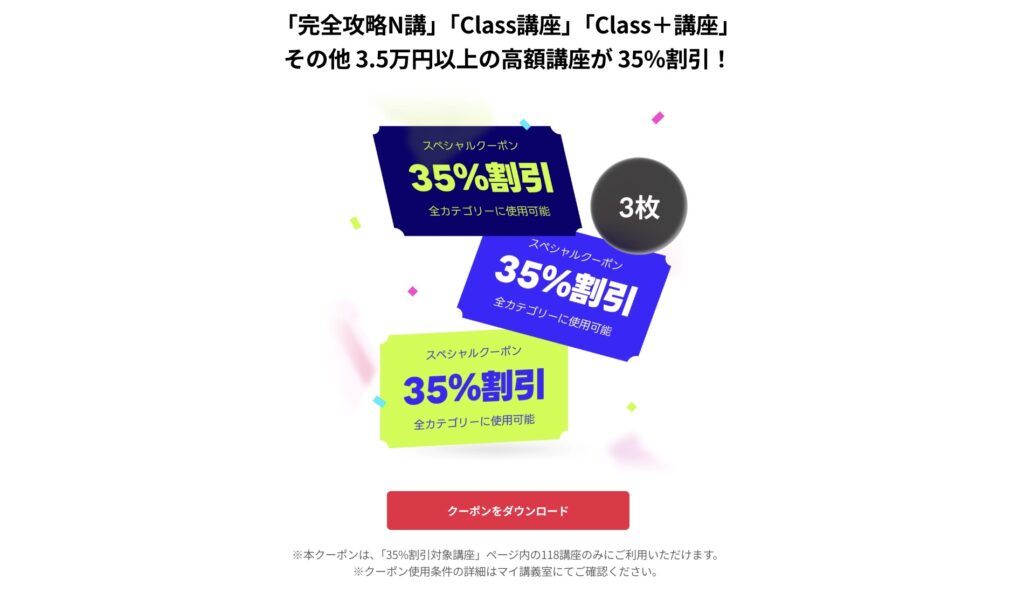 イベントやクーポンを駆使して購入すれば20,000円ぐらいで1つの講座が受けられます。