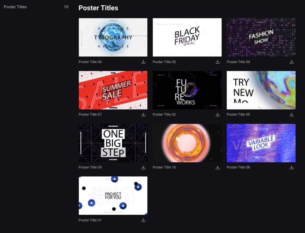 10種類のタイトルアニメーションが詰まったパックです。