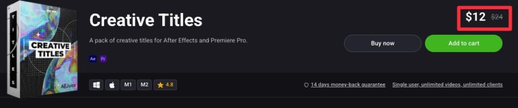 Creative TitlesはAE Juiceのバンドル製品、I Want It All Bundleに含まれますのでこちらを買った方がコスパが良くておすすめです。