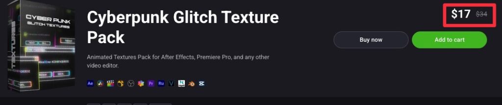 Cyberpunk Glitch Texture PackはAE Juiceのバンドル製品、I Want It All Bundleに含まれますのでこちらを買った方がコスパが良くておすすめです。
