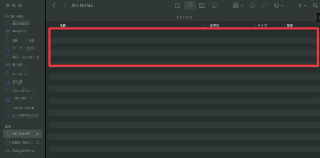 復元したいUSBメモリ(名前:NO NAME)をダブルクリックすると、