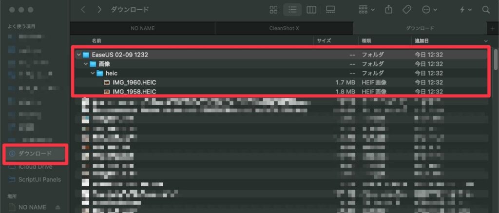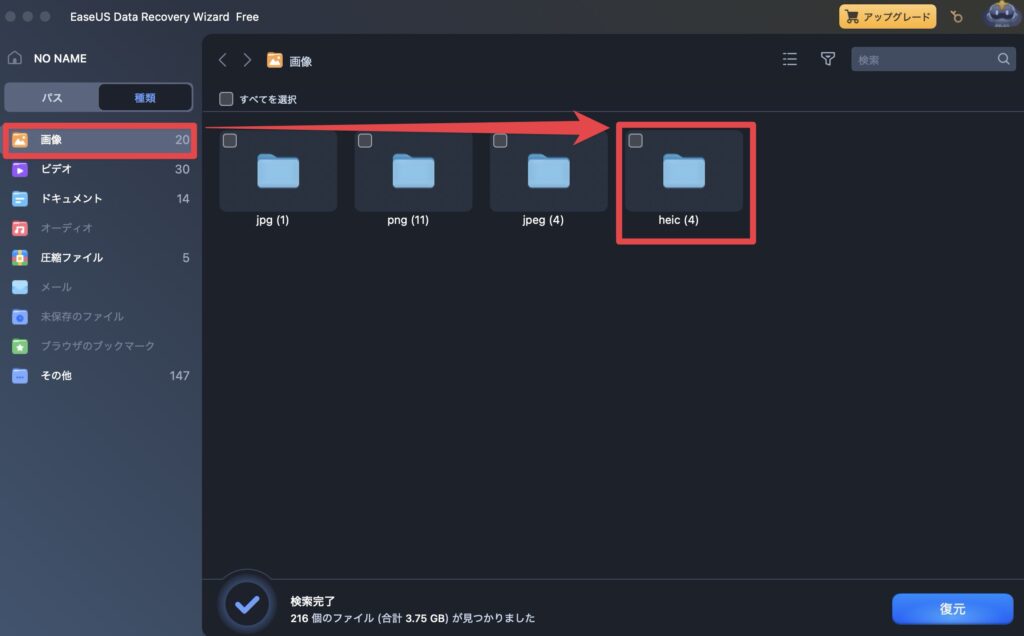 今回は画像(拡張子:heic)を復元したいので、