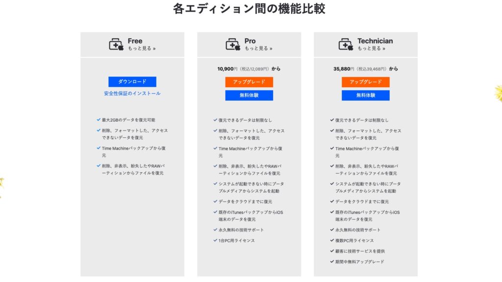 - 無料版でも2GBまで復元可能・スキャンは容量無制限