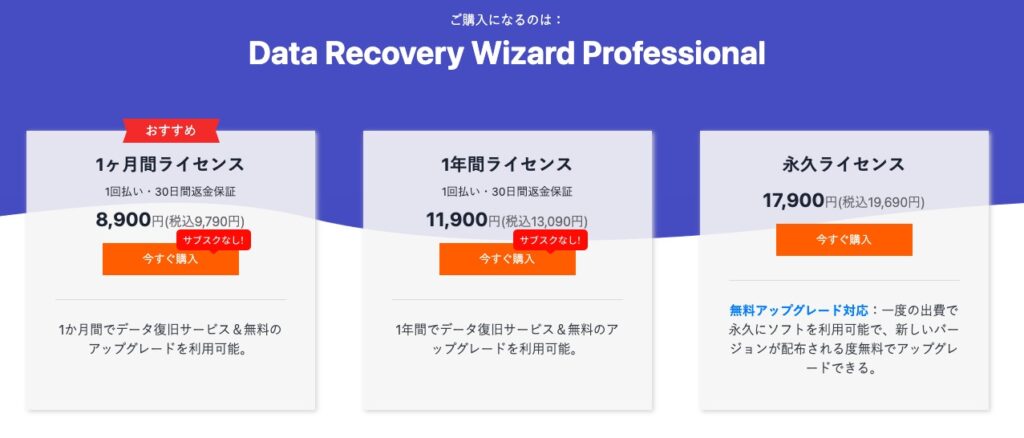 まずは無料体験版でそのデータが復元できるか確認してから有料版を購入するのがベストです。