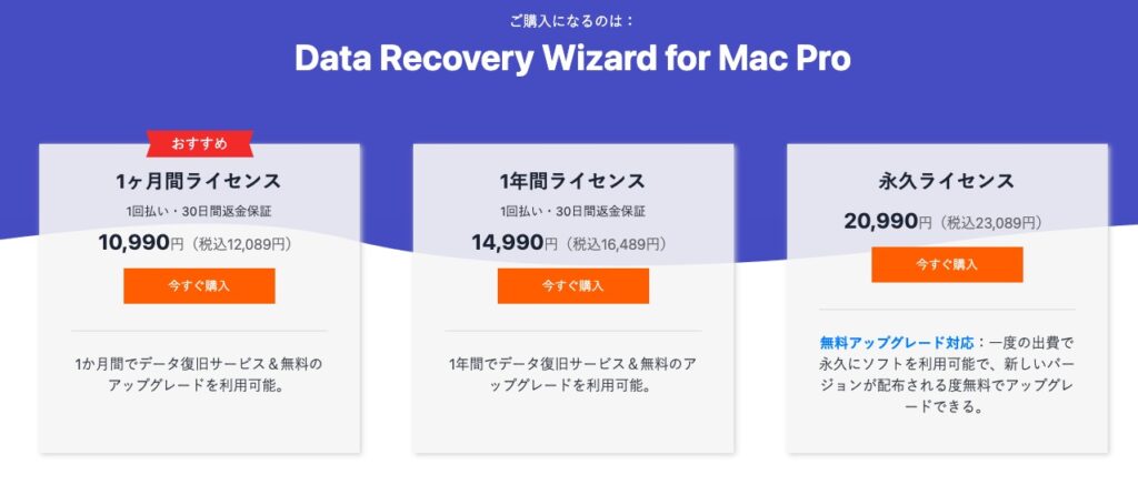 Pro版は1ヶ月・1年間・永久ライセンスの3つから選べます。