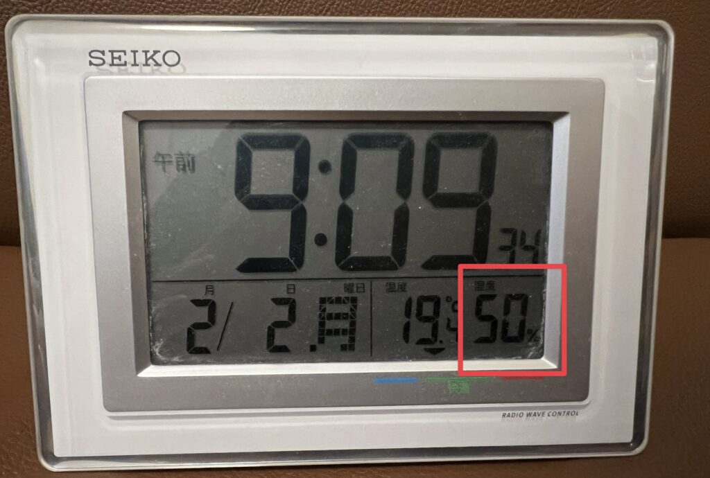 湿度を50%前後に保てる