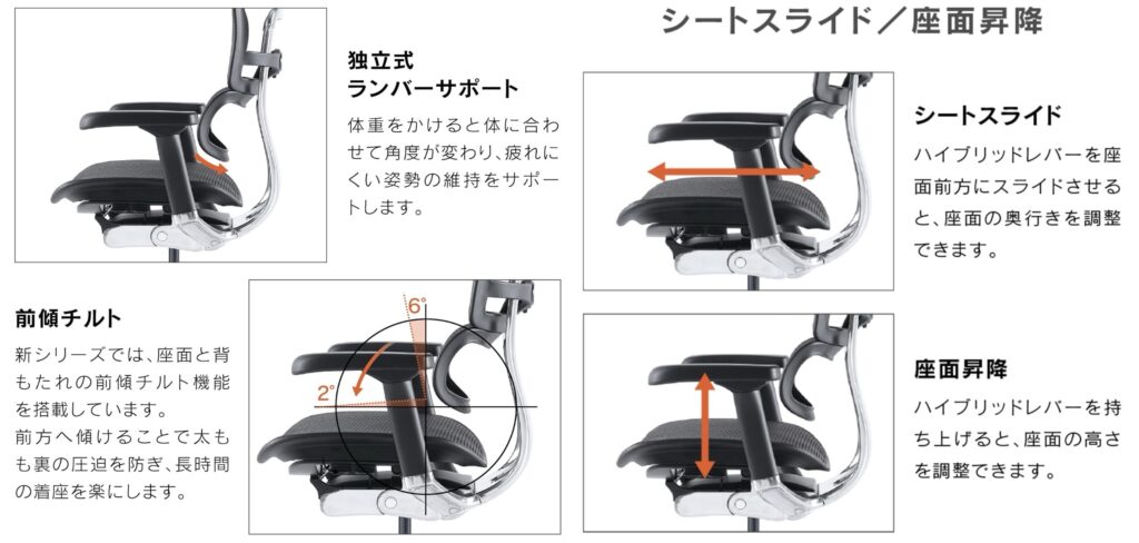 エルゴヒューマンは座面や背もたれなど、