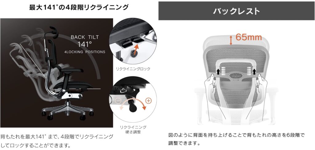 他にも座面の高さや椅子の角度、