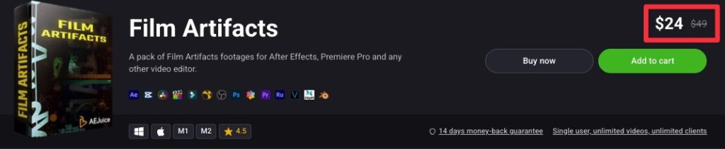 Film ArtifactsはAE Juiceのバンドル製品、I Want It All Bundleに含まれますのでこちらを買った方がコスパが良くておすすめです。