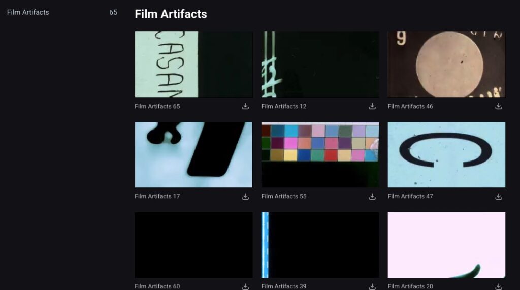 あらゆる映像編集ソフトに対応した、フィルムアーティファクト素材集です。Film Artifactsは、