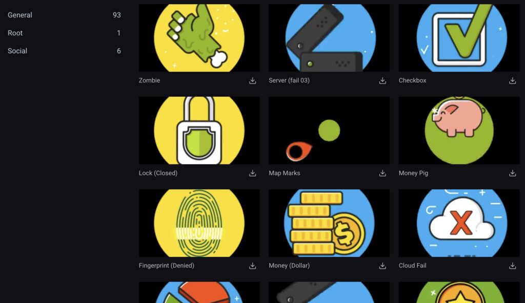 Flat Iconsはその名の通り、Flat Iconsは、After Effects、Premiere Pro、そしてその他のあらゆるビデオ編集ソフトのための、美しいアニメーションアイコンのセットです。