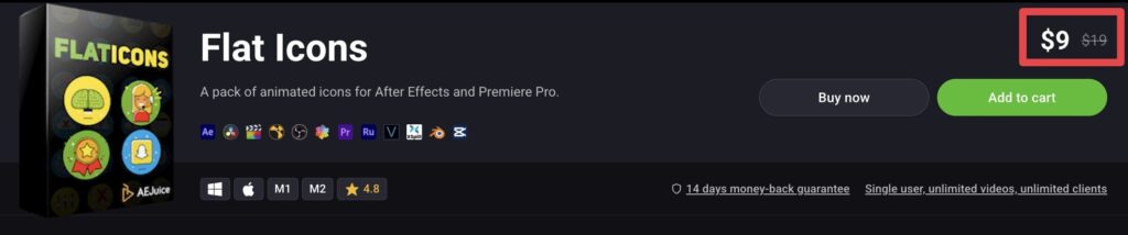 Flat IconsはAE Juiceのバンドル製品、I Want It All Bundleに含まれますのでこちらを買った方がコスパが良くておすすめです。