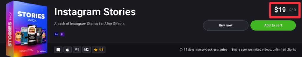 Instagram Stories【AE Juice,After Effects】はAE Juiceのバンドル製品、I Want It All Bundleに含まれますのでこちらを買った方がコスパが良くておすすめです。