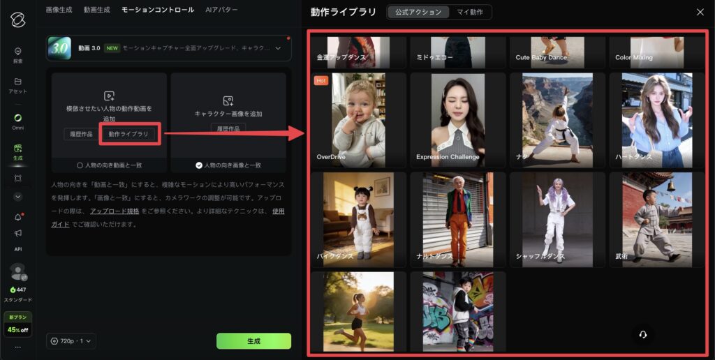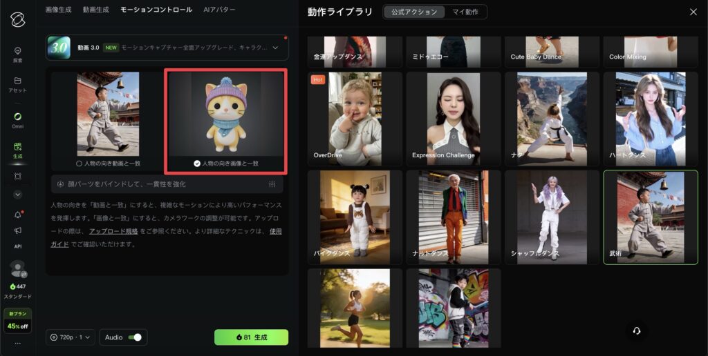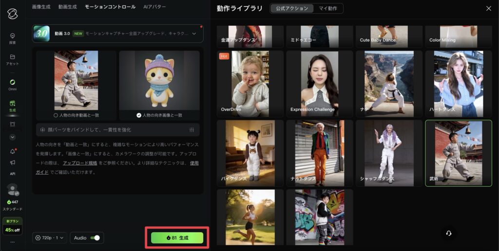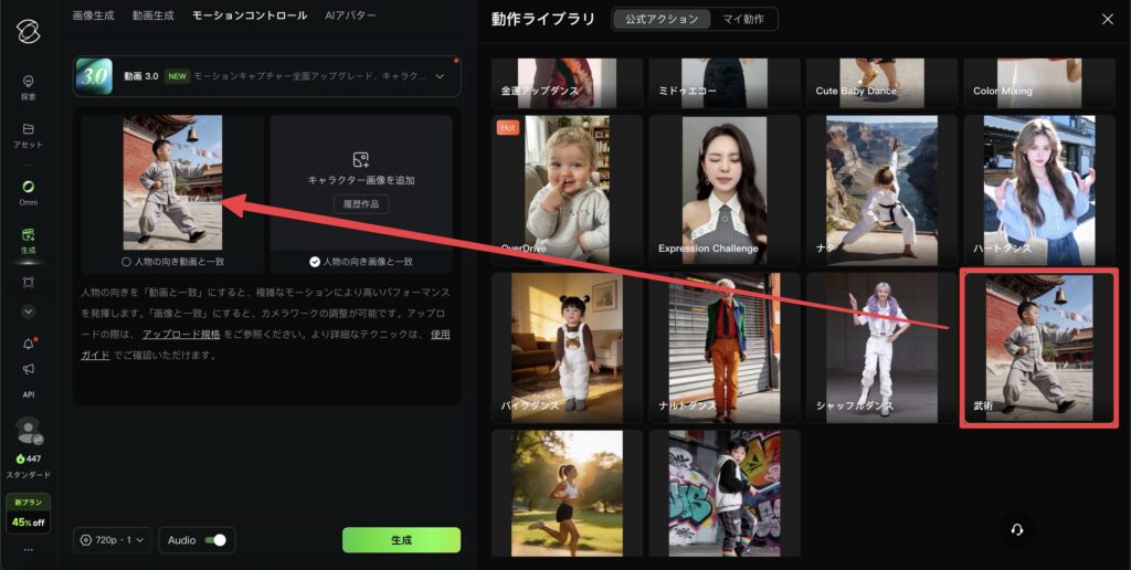 Kling AIのモーションコントロールを使ってキャラクターに自由な動きをつけられるようになります。