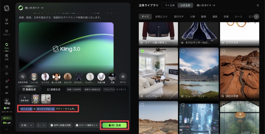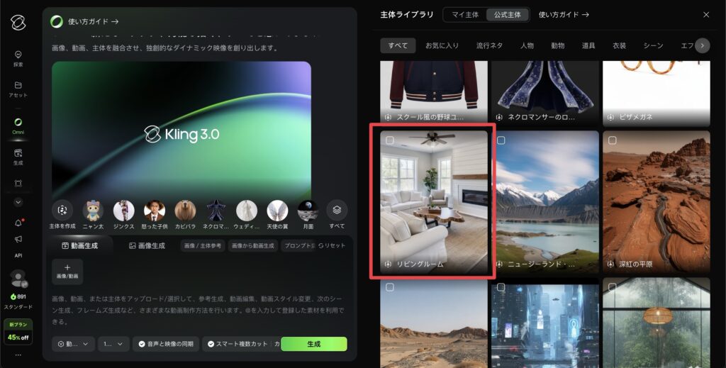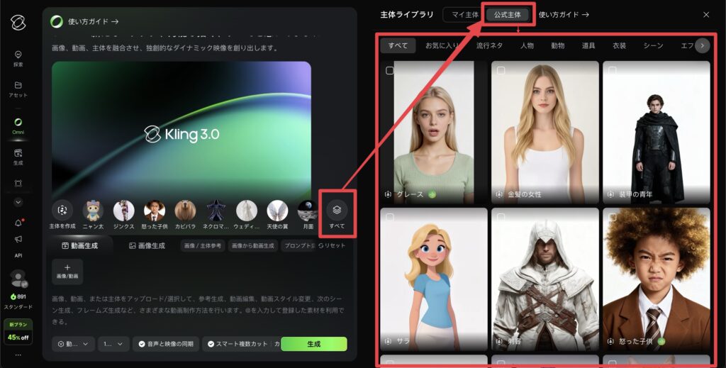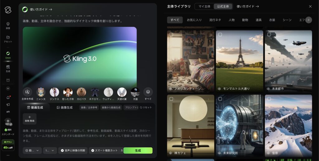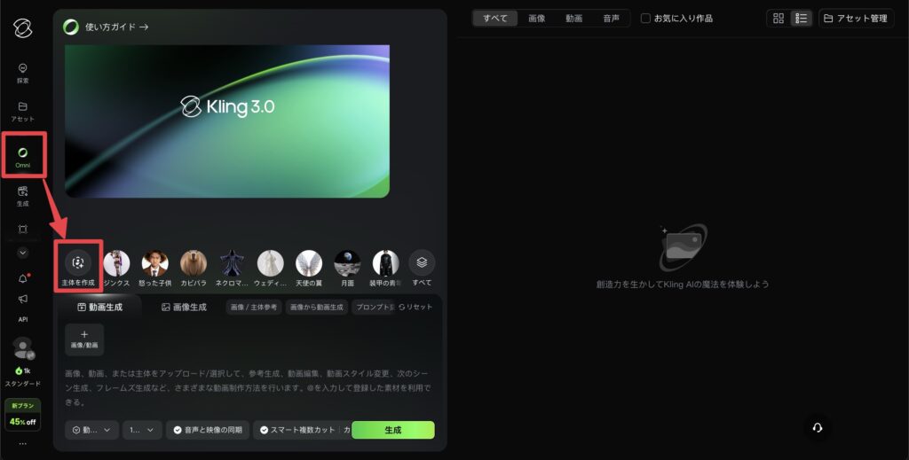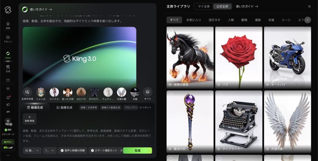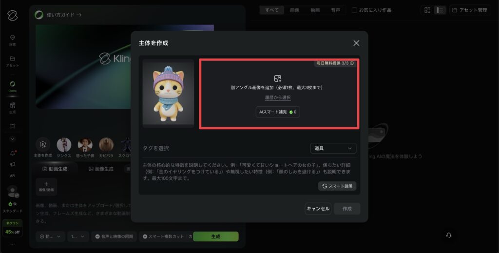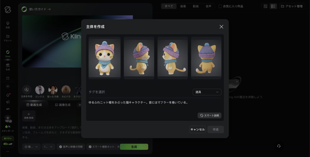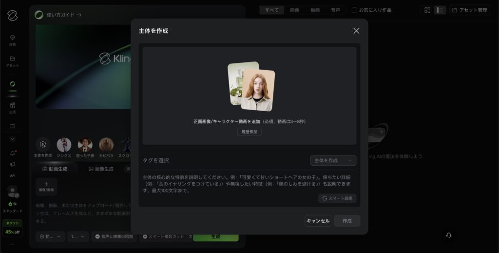 Kling AIでは、動画に登場させたいキャラクター・道具・シーンを総称して「主体」と呼んでいます。