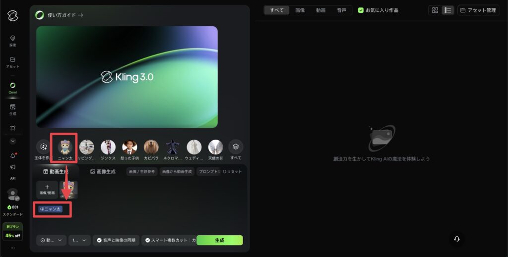 そのキャラクターを使ってAI動画を生成できるという機能ですね。
