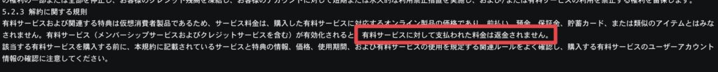 「有料サービスに対して支払われた料金は返金されません」と明記されていました。(※日本語訳)