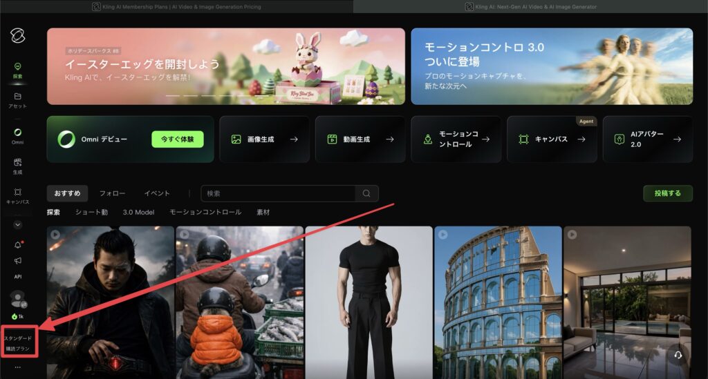 とはいえKling AIには無料で試せるプランが用意されているので、