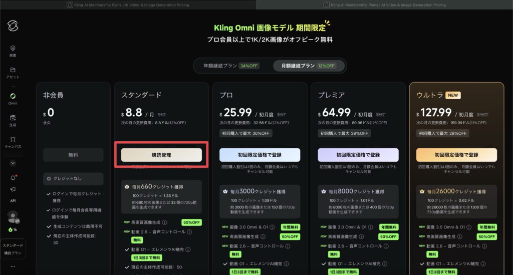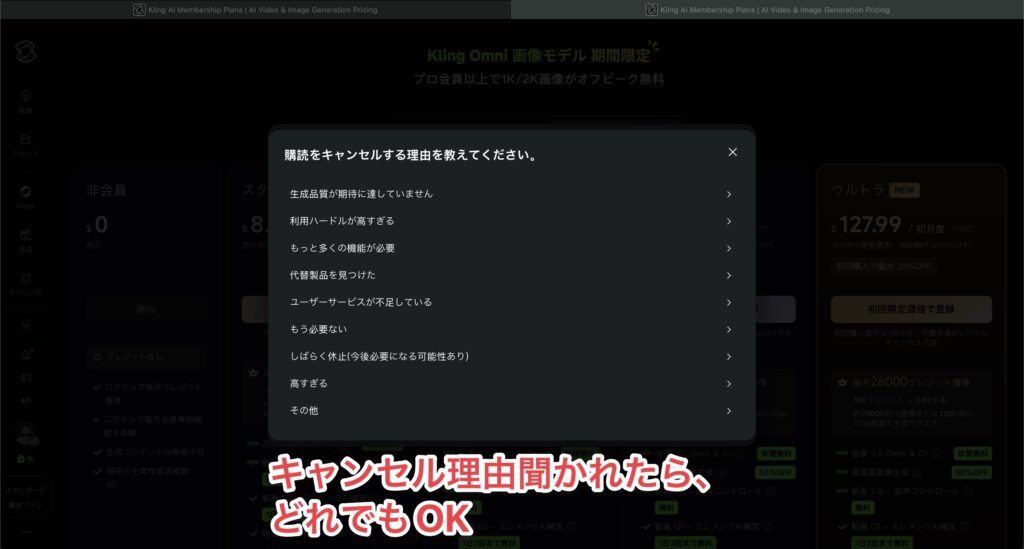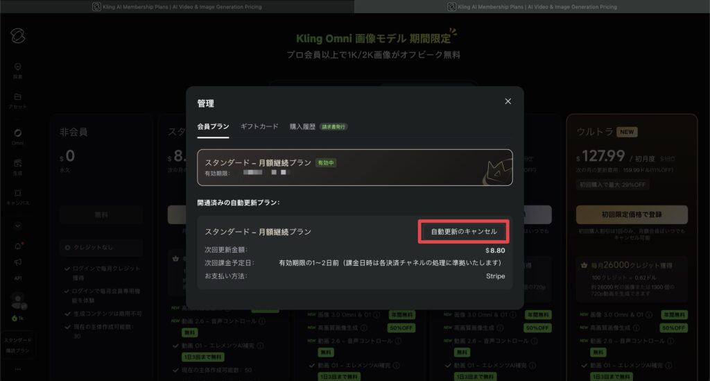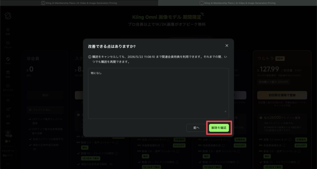 解約後もサブスクの残り期間中は引き続きKling AIが使えます!