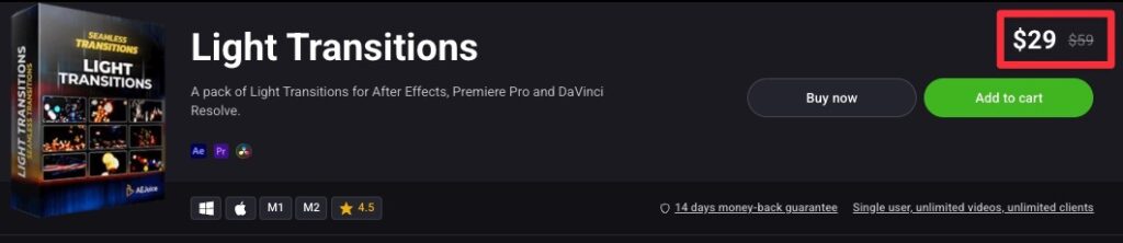 Light TransitionsはAE Juiceのバンドル製品、I Want It All Bundleに含まれますのでこちらを買った方がコスパが良くておすすめです。