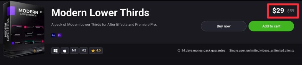 Modern Lower ThirdsはAE Juiceのバンドル製品、I Want It All Bundleに含まれますのでこちらを買った方がコスパが良くておすすめです。