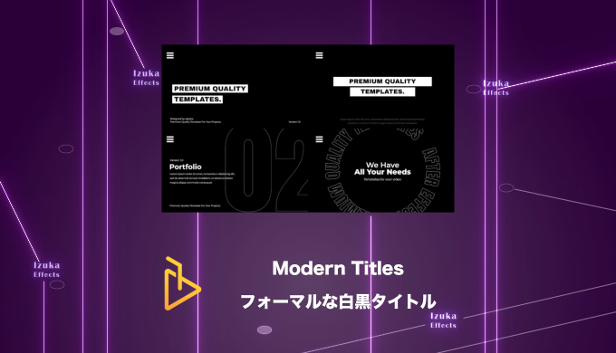 - Modern Titlesは、モダンなタイトルアニメーションが詰まった、白黒のかっこいいタイトル映像が作れるパック!