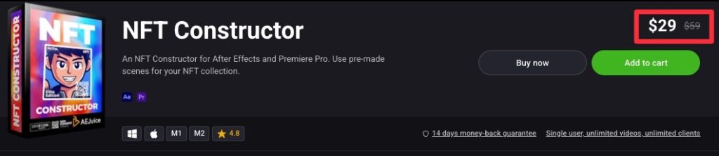 NFT ConstructorはAE Juiceのバンドル製品、I Want It All Bundleに含まれますのでこちらを買った方がコスパが良くておすすめです。