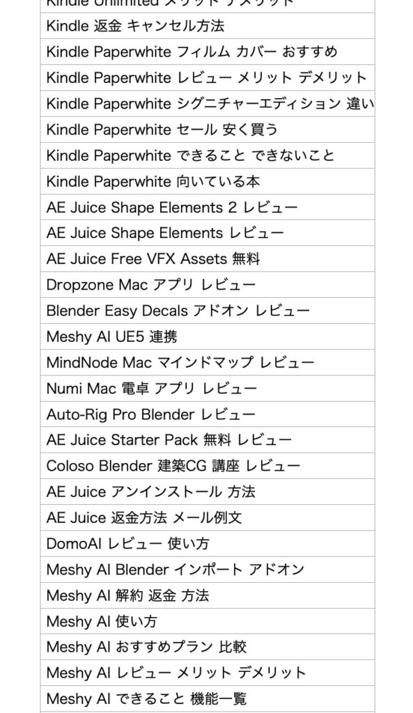 シンプルに1列にキーワードを入力したものを用意すればOKです。